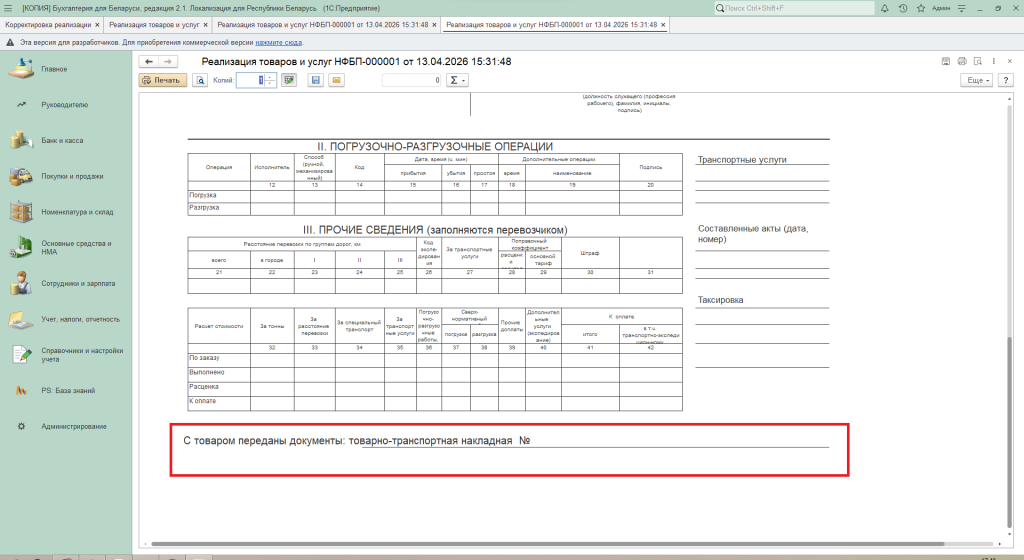Правильное заполнение ТТН и ТН в РБ — гарантия успешного, а также законного осуществления перевозок. Использование программных средств, таких как 1С, позволяет автоматизировать процесс заполнения товарно-транспортной накладной, а также избежать ошибок. Понимание различий между этими документами, а также знание правил их оформления поможет обеспечить правильный учет, контроль перемещаемых товаров.
