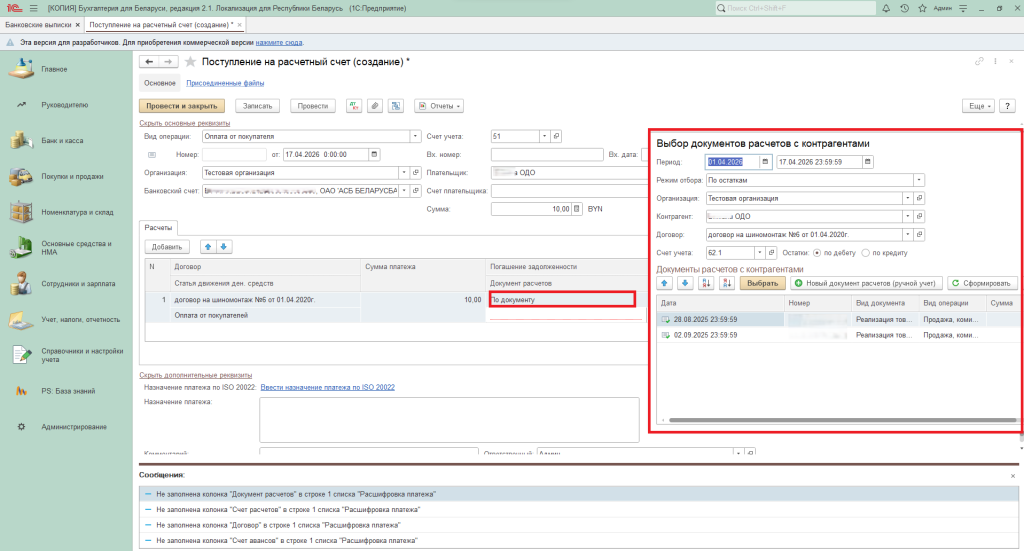 - Плательщик – выбираем контрагента, перечислившего вам оплату;