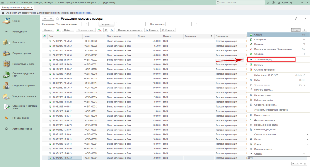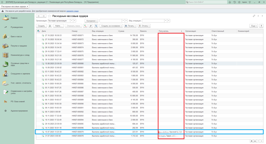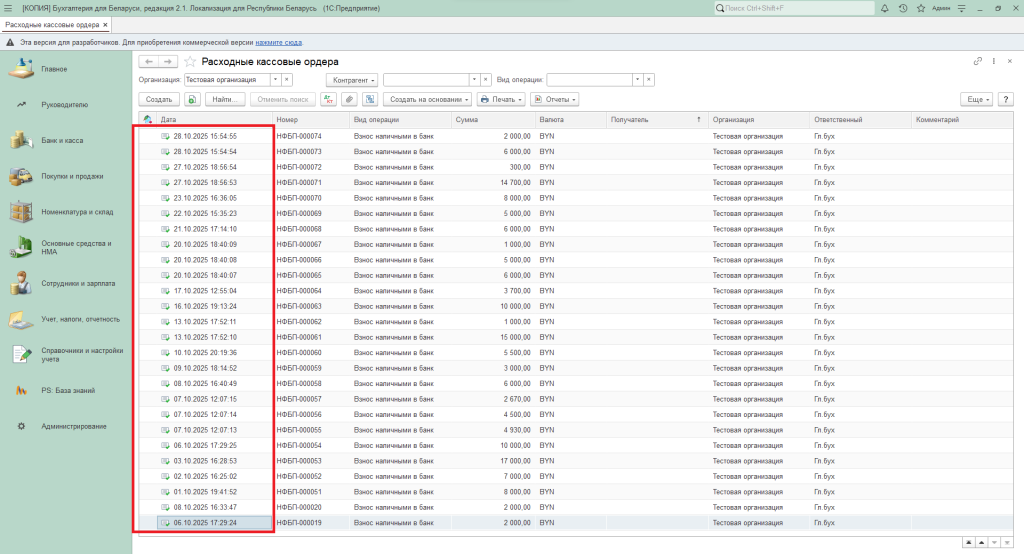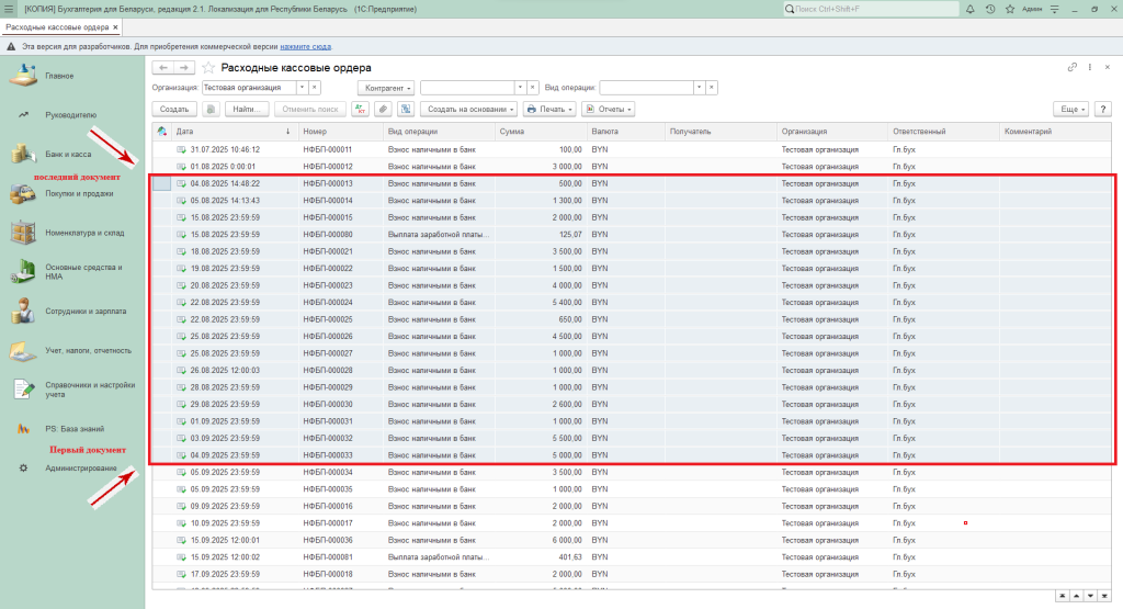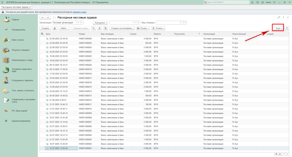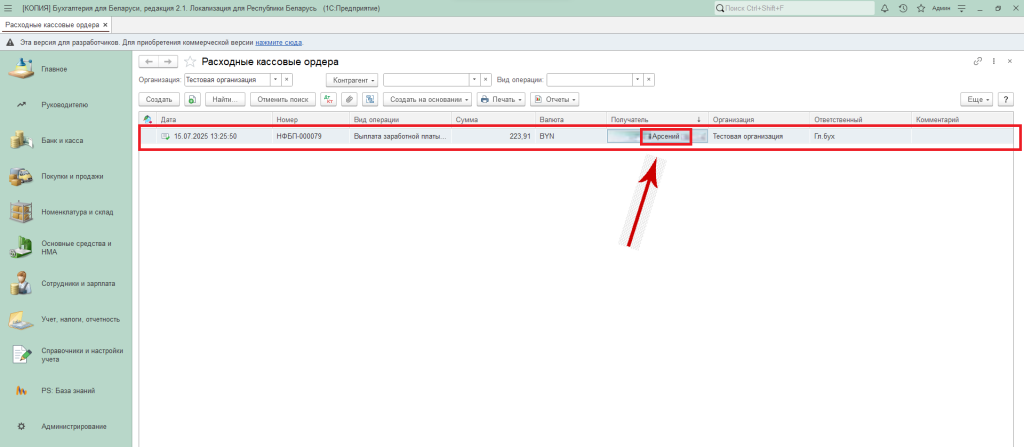 Заходим в раздел «Банк и касса» — «Расходные кассовые ордера».