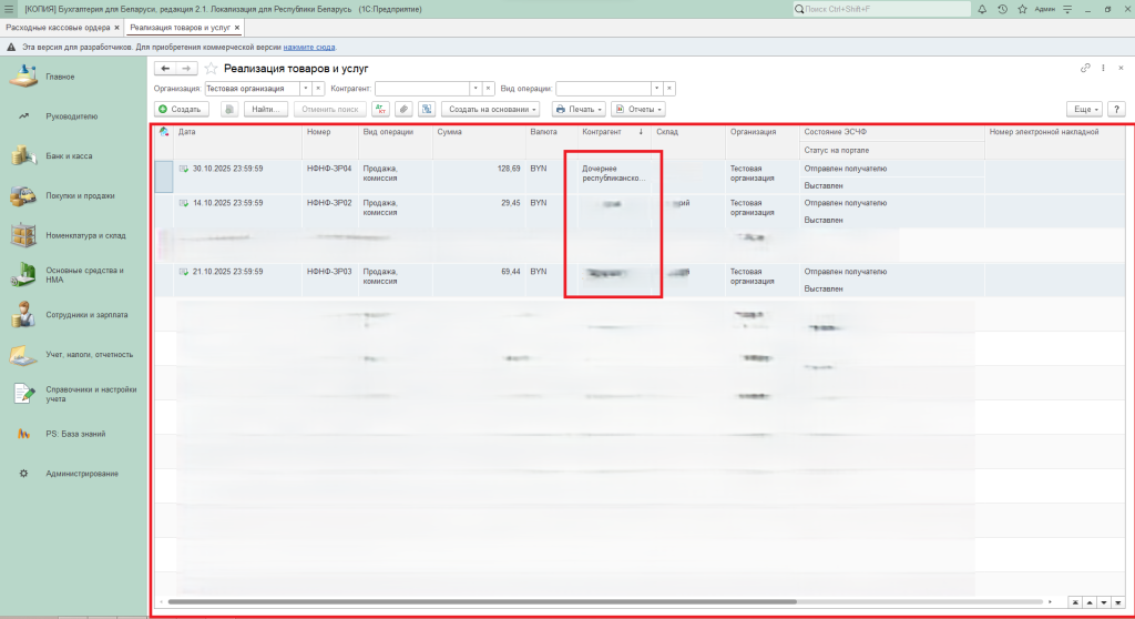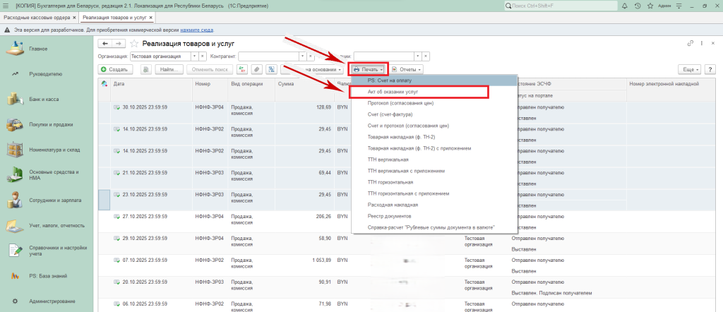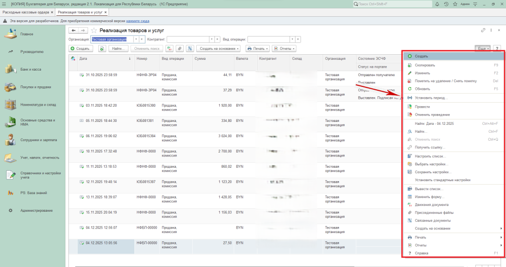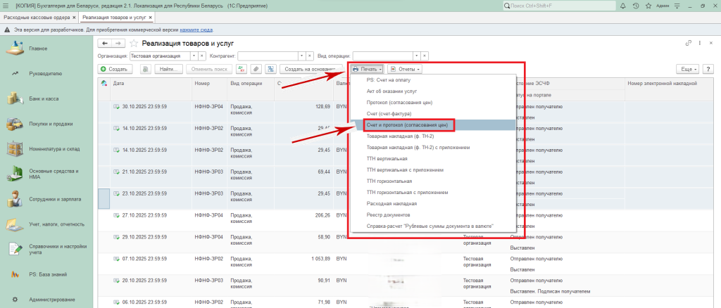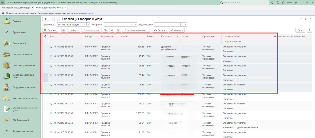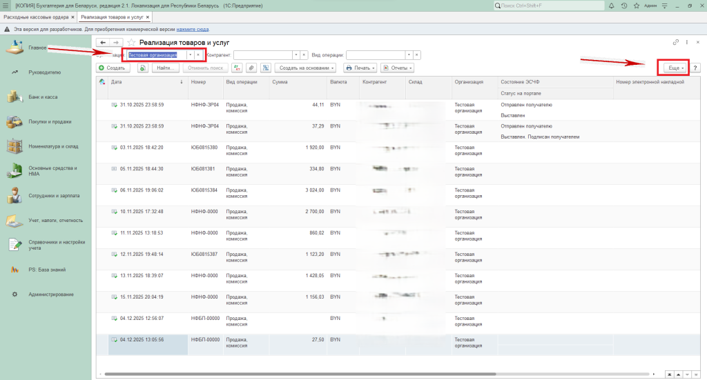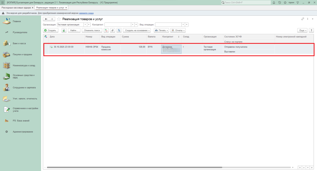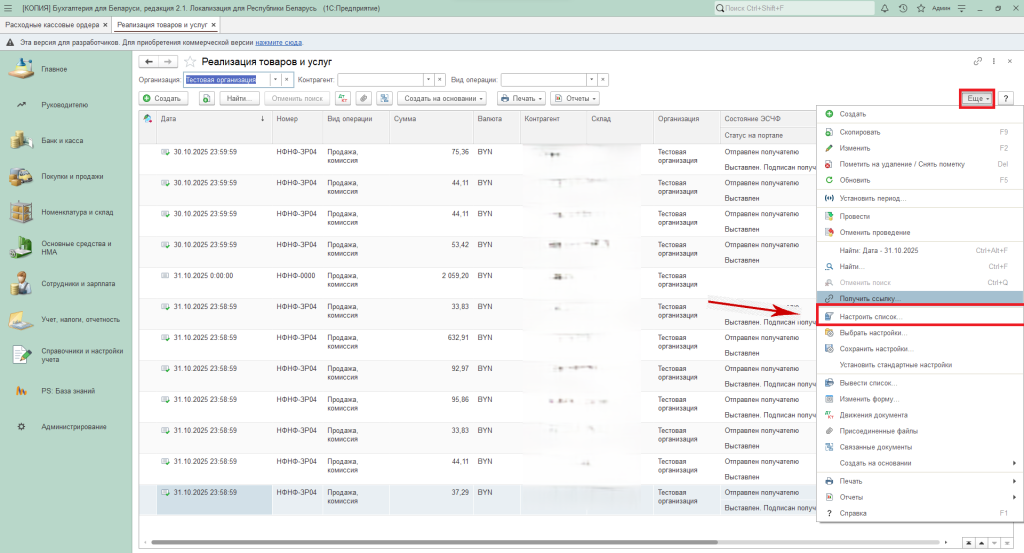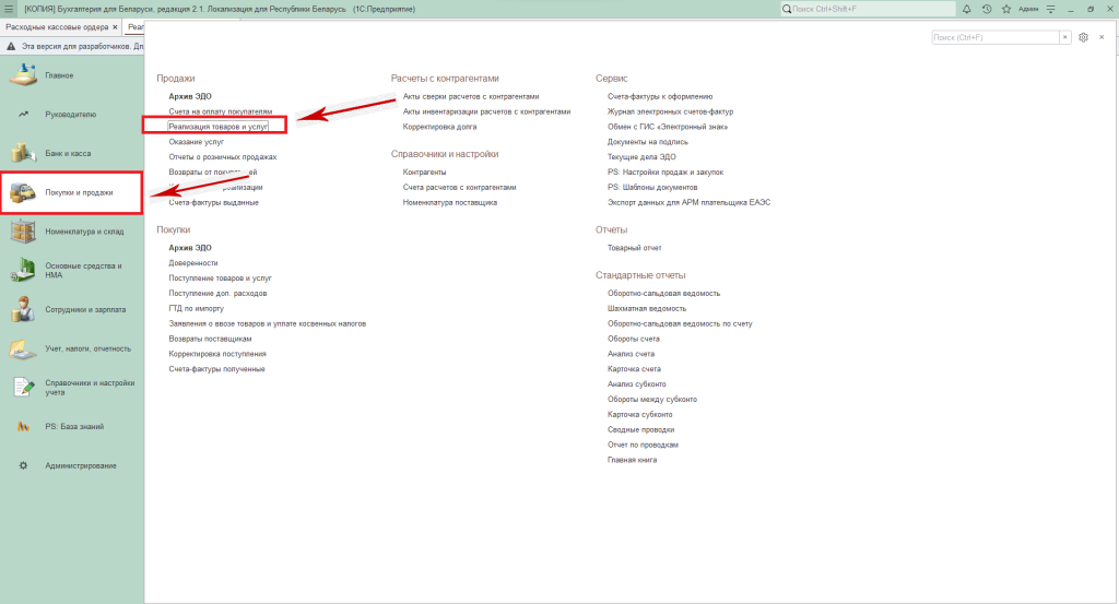 Рассмотрим на примере журнала документов «Реализация товаров и услуг» из раздела «Покупки и продажи».