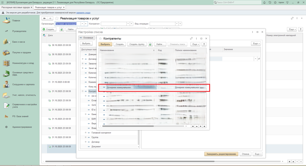 Далее выбрать нужного контрагента.