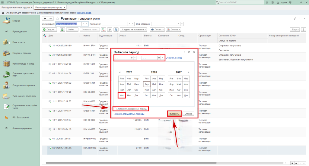 Далее задаем период и ставим галку «Запомнить выбранный период», нажимаем «Выбрать».