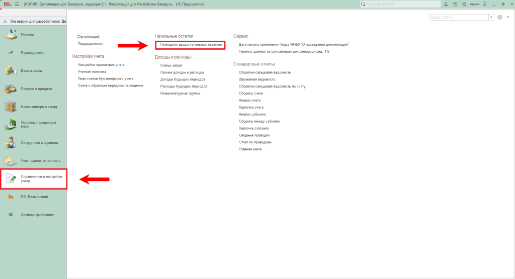 Ввод начальных остатков (общие настройки) в 1С Бухгалтерия предприятия