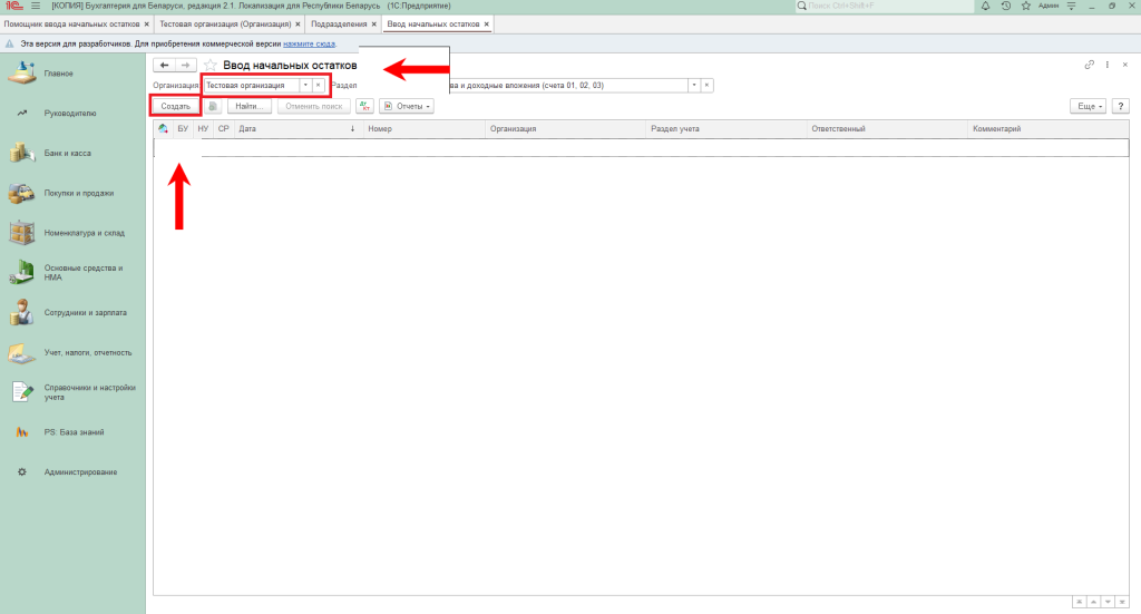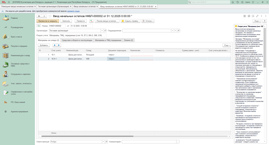 Остатки для бухгалтерского и налогового учёта вводятся отдельно по каждой организации, которая ведёт учёт в программе 1С Бухгалтерия (в случае, когда в базе их несколько). Если остатки вводятся по подразделению затрат, то в документе следует заполнить реквизит «Подразделение».